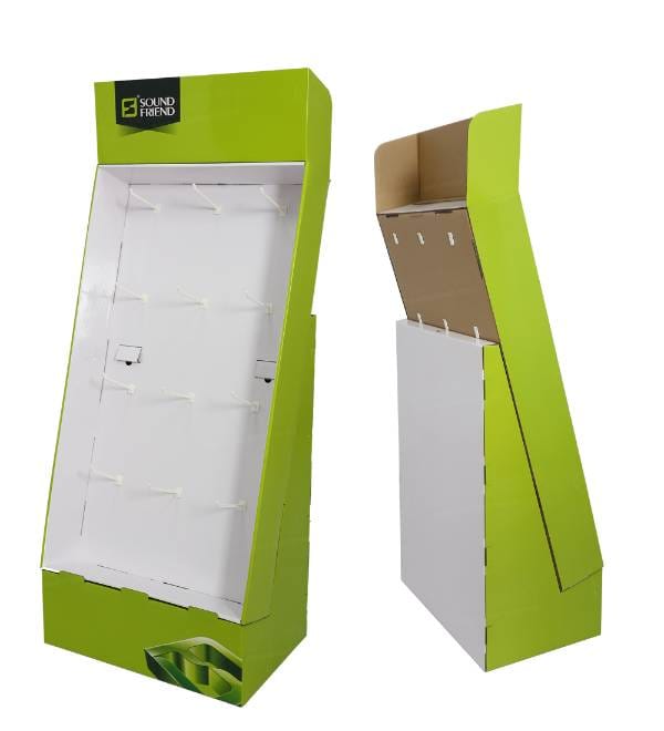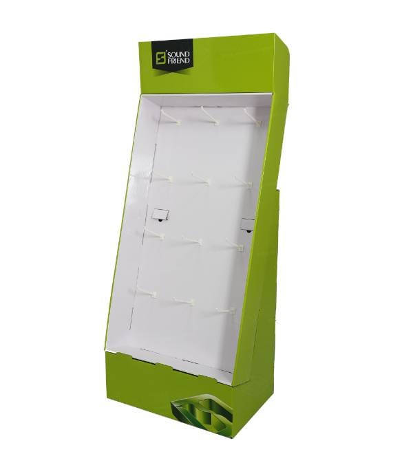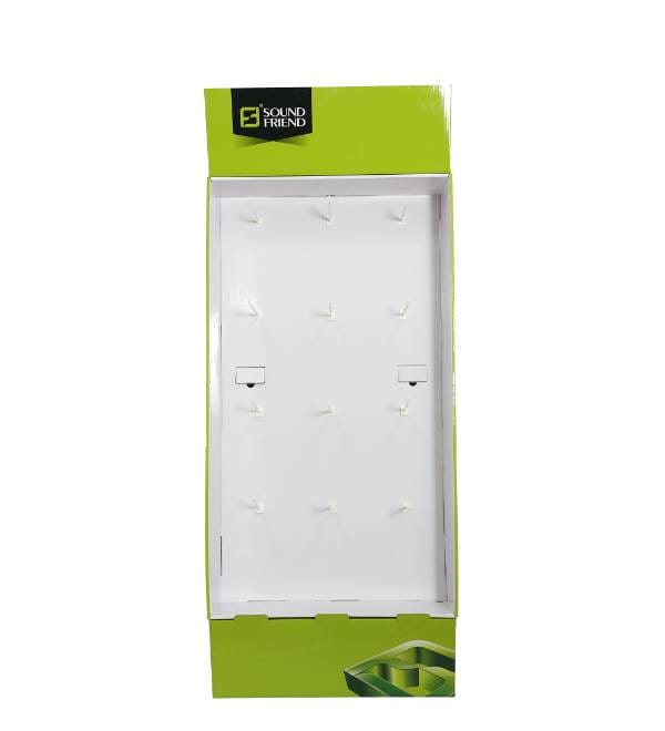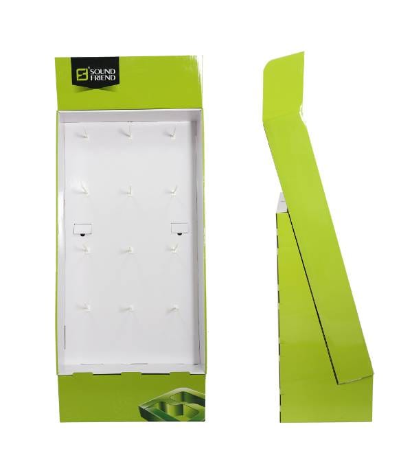 This vibrant lime green peg hook display is precision-engineered for the fast-paced electronics retail sector. Unlike generic metal shelving, our custom Cardboard Displays provide high-impact visibility for tech accessories like earbuds, charging cables, and portable speakers. The striking color palette and ergonomic slanted profile are designed to capture consumer interest in crowded retail environments. As a versatile Floor Display, this unit serves as a high-performance point of purchase fixture that drives impulse buys near checkout zones or tech aisles.