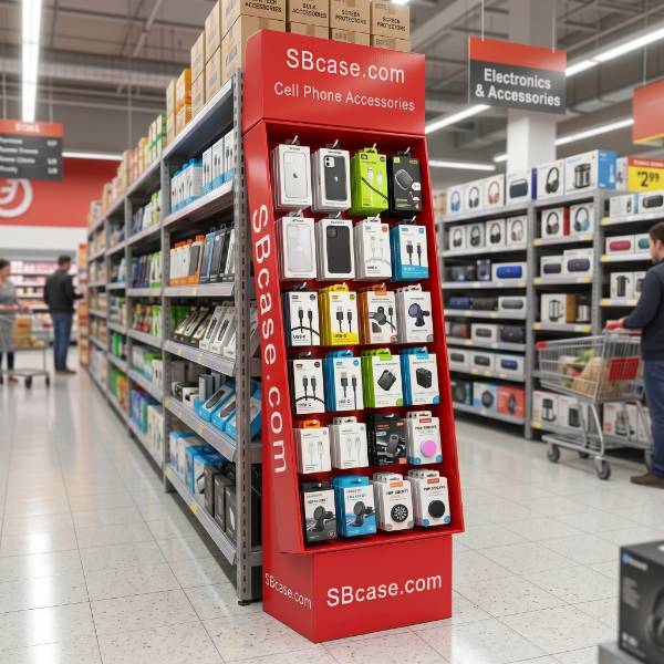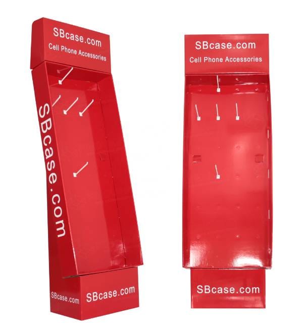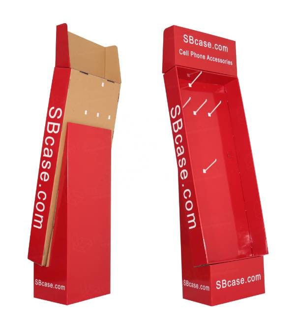 This eye-catching red cardboard display is specifically engineered for the fast-paced electronics and mobile accessory retail environment. Unlike standard metal racking, our custom Cardboard Displays offer high-impact branding opportunities for tech companies like SBcase.com. The vibrant red finish and ergonomic slanted profile are designed to capture customer attention in high-traffic zones, while the integrated peg hook system maximizes product density for items like charging cables and phone cases. As a highly effective Floor Display, this unit serves as a mobile point of purchase (POP) fixture that drives impulse buys and increases overall basket size.