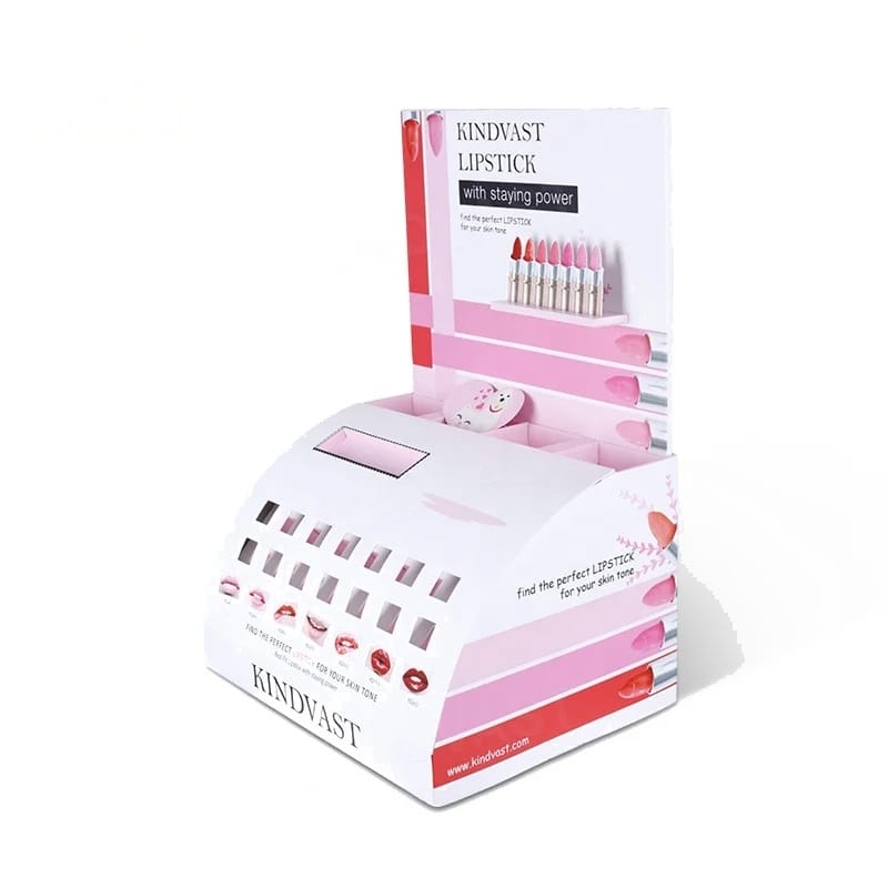 この目を引くピンクのKINDVASTカウンターユニットは、美容・パーソナルケア業界向けに特別に設計されています。一般的な金属製ラックとは異なり、当社のカスタム段ボールディスプレイは、新しいリップスティックラインや季節限定コレクションの発売を検討している化粧品ブランドに、比類のない視覚的魅力を提供します。鮮やかなピンクのプリントと曲線的な段状のフォルムは、購入時に顧客の注目を集めるように設計されており、一体型のテスター穴と色見本グラフィックが、買い物客の選択プロセスをガイドします。効果的なカウンターディスプレイ、このユニットは薬局やブティック環境で衝動買いを促すコンパクトながら強力なツールとして機能します。