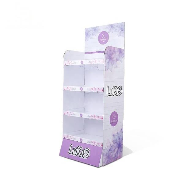 このエレガントなラベンダーの花柄が特徴的なFSDUは、美容・パーソナルケア用品の小売環境向けに特別に設計されています。標準的な棚とは異なり、当社の特注段ボール製ディスプレイは、 Lukisのようなスキンケアブランドの視認性を高めます。鮮やかな紫色のプリントと段状の棚の形状は、人通りの多い場所で顧客の注目を集め、4段構造は貴重な床面積を占有することなく、最大限の商品陳列を可能にします。効果的なフロアディスプレイ、このユニットは強力な販売促進ツール(POP)として機能し、化粧品売り場での買い物客数を増加させます。