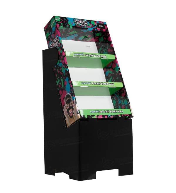 Эта эффектная черная картонная напольная витрина специально разработана для того, чтобы подчеркнуть достоинства брендов косметики и средств по уходу за кожей в условиях жесткой конкуренции в розничной торговле. В отличие от стандартных торговых конструкций, наши изготовленные на заказ картонные витрины обеспечивают высокую видимость косметических продуктов, таких как линейка отшелушивающих масок So Fresh So Clean. Графика в виде брызг краски, вдохновленная неоновыми цветами, и стратегически наклоненный профиль полки призваны привлечь внимание покупателей в местах с высокой проходимостью в аптеках или косметических отделах. Эта универсальная напольная витрина служит эффективным средством для увеличения конверсии в местах продаж, быстро перемещая товары с полки в корзину покупателя.
