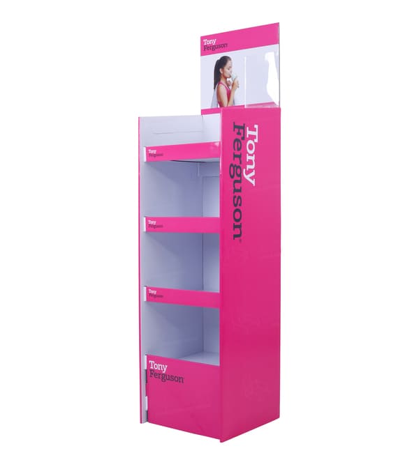 这款醒目的洋红色纸板落地展示架专为在人流量大的健康美容纸板展示架针对体重管理和营养补充剂行业进行了优化,为像Tony Ferguson这样的品牌提供高端展示平台。鲜艳的粉色饰面和开放式货架设计确保维生素、蛋白棒和代餐奶昔等产品获得最大程度的展示效果。作为一款多功能落地展示架,它可作为极具冲击力的销售点 (POP) 陈列装置,有效引导顾客前往您的核心产品线,显著提升非计划性购买量。